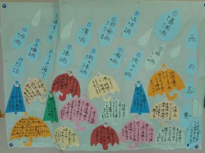さて、日本では昔から”雨”に様々な呼び方をつけ、親しみをもっていました。農業を中心とした歴史が影響しているのかもしれません。図書室前に”雨”について掲示されていましたので、紹介いたします。