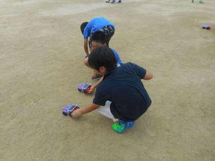 昨日、運動場で理科の学習でソーラーカーを作り、走らせました。太陽が出ているとよく動き、太陽が雲で隠れると動きが弱くなるなど、日光の力でものが動くことを体験的に学習できました。