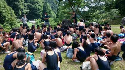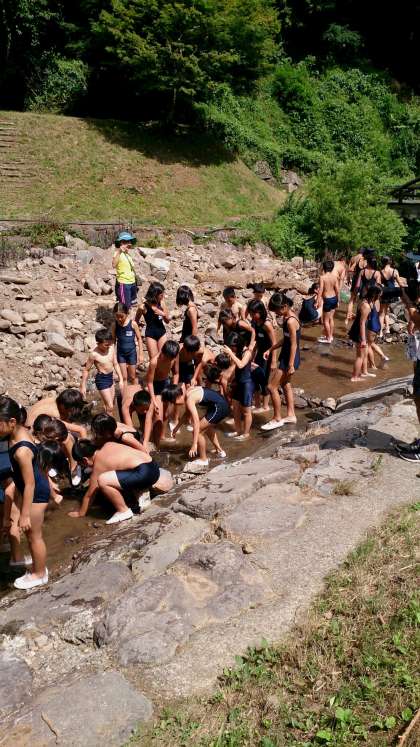 早速、午前中の様子です。川の水量の関係で、午後から実施予定だった「魚つかみ&川遊び」を午前中に行いました。昼から「飯ごう炊さん」を行います。