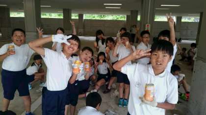 ジュースを飲んで一息…、の後は、焼き板作りです。