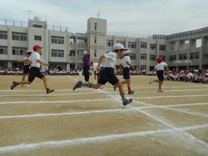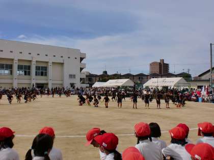 2年生は「NINJAの心」をもって力強く踊りました。黒のTシャツでそろえ、ポーズもかっこよく決まっていました。大玉ころがしでは友だちと力を合わせて、かけっこでも精一杯がんばり、大きく成長した姿を見せてくれました。