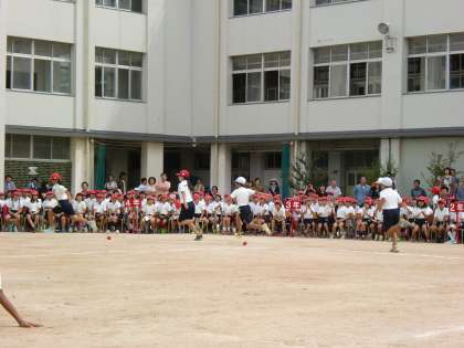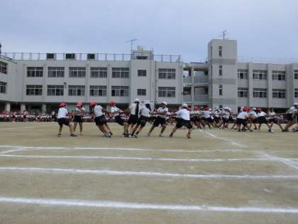 5年生は南中ソーランの演技をしました。学級ごとに大漁旗を作成し、全員で法被を着て踊り、とても迫力がありました。棒引きや個人走も力強く、がんばりました。また、高学年として委員会活動の運動会の仕事をがんばりました。