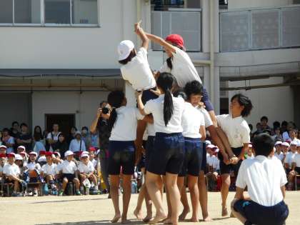 6年生は小学校生活最後の運動会となりました。騎馬戦は見ごたえがありました。また、個人走ではくじ引きがあり、運も左右されるなど楽しいものとなりました。そして、委員会活動では中心となって活動し、最後の組立体操も立派にやり遂げました。心を一つにしてがんばり、「波」や「虹」など感動的な表現をしてくれました。退場する時のたくさんの拍手を忘れずに、これからの学校生活でも活躍してほしいですね。