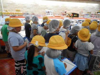 社会見学では、商品をパックする様子や商品の陳列の工夫についても話を聞きました。今回の見学を通して衛生面に気を付け、安全な商品をお客さんに届けている努力の様子がよくわかりました。