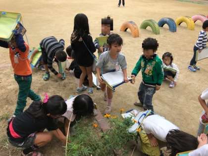 1年生の学習園で育てていたひまわりも秋の様子を見せています。お花の真ん中をよく見ると種がたくさんできていて、1年生の子どもたちは驚いていました。そのあと、収穫して観察しました。来年の夏も、大きく育つといいですね♪