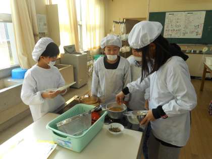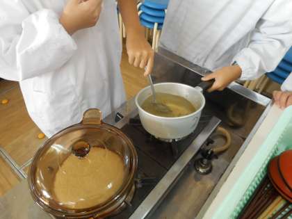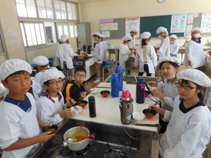 今日の調理実習の様子です。自分たちで作ったご飯とみそ汁なので、子どもたちはとてもおいしそうに食べていました。