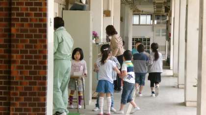 今日(4月30日)は、4人組で学校探検をしました。学校の中にはいろんな部屋がたくさんあります。リーダーを中心に、4人で力を合わせて、いろんな部屋をまわりました。うれしくて、楽しくて思わず走り出してしまいます。全部まわったか確認できるように、一部屋ずつシールをはりました。