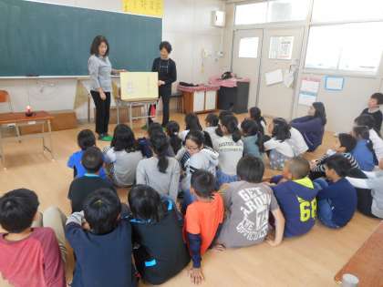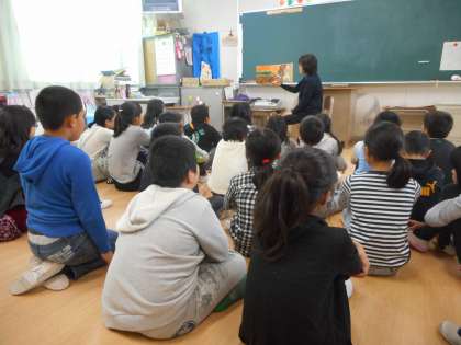 5年生のお話会の様子です。「ゆうたとさんぽする」・「ねこのさら」・「ちがうねん」・「日本語あそび学」・「メイドインどこ?2」・「いもさいばん」・「絵本ことばあそび」・「オンボロ屋敷へようこそ」のお話を聞きました。