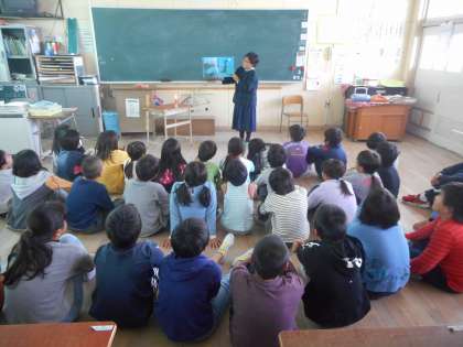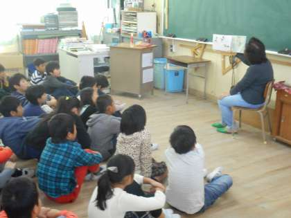 今日、4年生はお話会がありました。教室内にろうそくの火をつけて、お話の世界へ引き込むような雰囲気づくりをしてくださり、とても楽しい時間を過ごすことができました。内容は「あいつとぼく」・「つきよのかいじゅう」・「へやの起こり」・「ゴリオとヒメちゃん」でした。