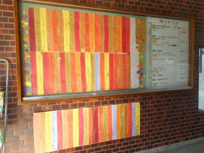 今月の玄関掲示は6年生の作品です。子どもたちが秋をテーマにして俳句をつくりました。様々な言葉が溢れる校内環境づくりへ入口から表してくれています。ぜひご覧ください。