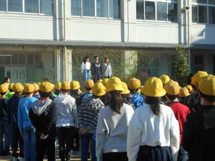 また、児童朝会では健康委員会からせいけつ調べについての話がありました。寒くなり体調を崩しやすくなっていますので、手洗い・うがいをきちんとしてほしいと思います。そして、代表委員会からも子ども天国のめあてについての話がありました。今年のめあては「たくさんの人と協力し合い、最高の笑顔で楽しもう!」です。明日からグループごとに活動がはじまります。めあてに向かってがんばってほしいですね。