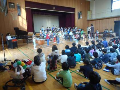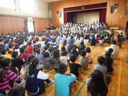 今日のフレンド集会は4年生がんばって集会でした。金曜日の交歓音楽会に学校の代表として参加する4年生が子どもたちの前で合奏・合唱を披露しました。少し緊張した様子もありましたが、立派に合奏・合唱を行いました。また、4年生の子どもたちは、他の学年の子どもたちからの感想や応援メッセージをもらいました。金曜日が楽しみですね。