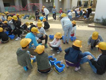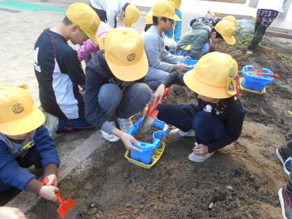 今日1年生は植木鉢の土を入れ替えて、チューリップの球根を植えました。今回は6年生に手伝ってもらって、一緒に行いました。6年生が優しく教えてくれたので、子どもたちは喜んでいました。6年生との思い出がまた1つ増えました。