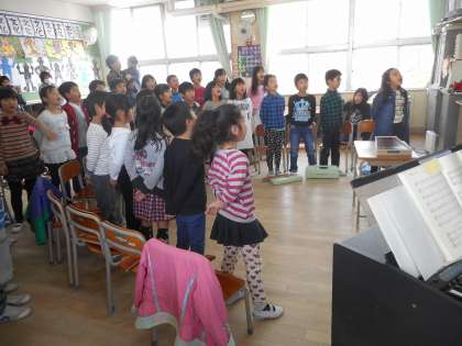 3年生は音楽を行い、3年生から始まったリコーダーの演奏や合唱などをしました。「山のポルカ」など、曲の感じを生かして演奏しました。