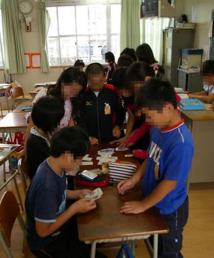ある教室では、将棋を友だちとやっていました。また、ある教室では、林間学習のスタンツの練習かな?音楽を流してダンスをしていました。もちろん中学年と同じようにトランプをしている子も多くいました。