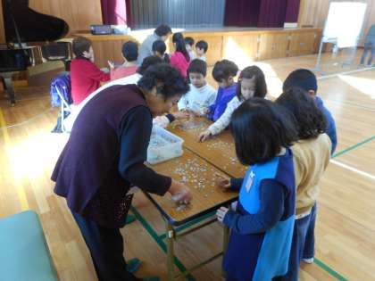 今日は土曜授業で1年生は昔遊びを行いました。地域の方にお越しいただき、様々な遊びを教えていただきました。