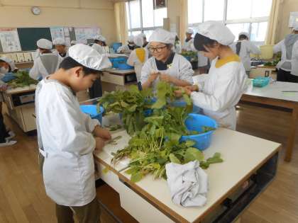 昨日、今日と5年生が学校で育てていた天王寺かぶらの収穫とお漬物作りをしていました。今年は育ちが悪く、かぶは小ぶりでしたが茎や葉はよく育ちました。来週に漬けなおしをして、その後の完成が楽しみです。