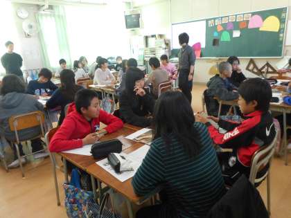 昨日・今日と中学校の先生にお越しいただき、英語の出前授業をしていただきました。2日続けて色や気分を表す単語を中心に、教えていただきました。中学校から本格的に始まる英語ですが、楽しくスタートできればと願っています。