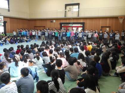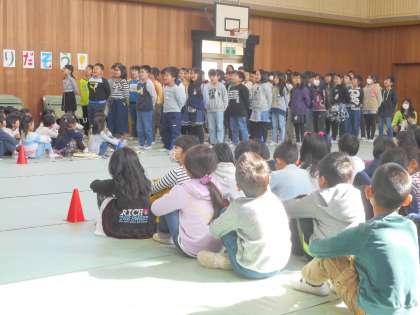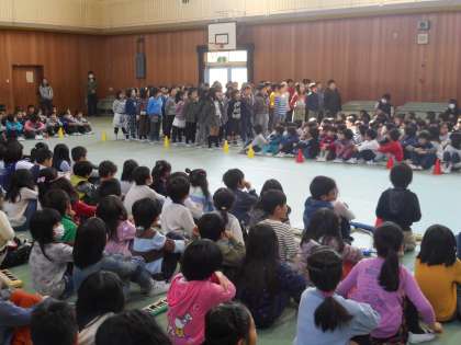 3年生は「君と僕のラララ」の合唱を、4年生は「チャレンジ」の合唱を。5年生は「3月9日」の合唱をプレゼントしました。