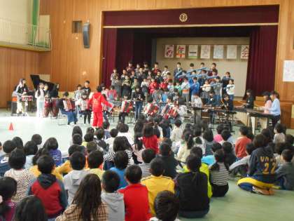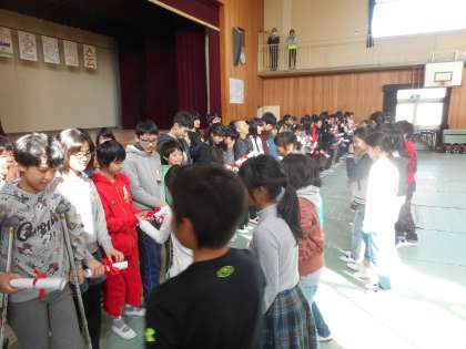 6年生からは「情熱大陸」の合奏と「君をのせて」の合唱のお返しがありました。