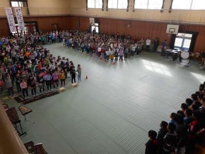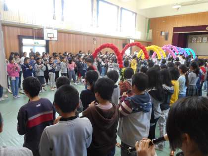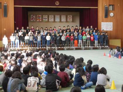 最後に全学年で「YELL」を歌いました。これで、全学年が一同に集まって行う活動は最後となりました。今日は、本当に心温まる集会となりました。6年生の皆さん、残りわずかとなりました。毎日を大切に過ごして欲しいと思います。