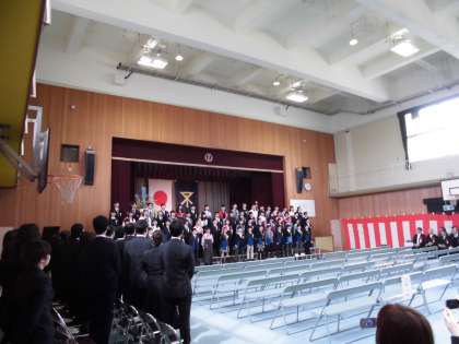 卒業式では思いが込められた卒業生の言葉に心が打たれ、とても感動的な式になりました。天気が心配でしたが最後は運動場に花道を作り、卒業生を見送ることができました。また、祝電もたくさんいただきました。ありがとうございました。