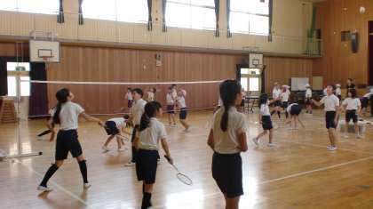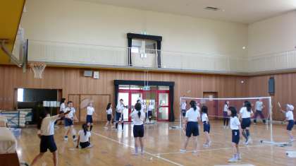 シャトルをうまく打てるように、しっかりと狙っていますが、ふわりと落ちてしまうこともあります。元気な女子が多いです。