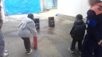 教室の前にあるミカンの木には、アゲハチョウの幼虫がついています。虫かごの中にもたくさんいます。子どもたちは毎日、葉っぱを食べる様子や動きを観察しています。ミカンの木についた幼虫はそのうち、教室のどこかでサナギになることでしょう。そしてきれいなチョウになる日を待ちわびています。