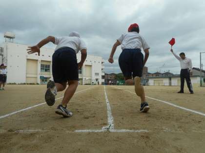 本日より、体力テストの50m走がはじまりました。午前中に6年生と1年生が行いました。6年生は力強く走っていました。