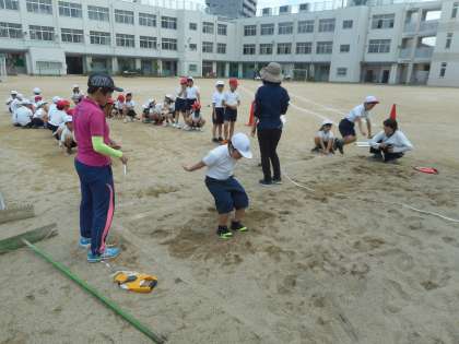 今日、学校では3年生が体力テストを行いました。50m走以外にも、立ち幅跳びや握力などにも取り組みました。「昨年より記録がよくなっている」と、成長を実感している声も聞かれました。