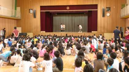 今日は、ジェスチャークイズでした。集会委員会の人がするジェスチャーを見て、何かを当てます。子どもたちはすいすい解いていきますが、中には難しい問題もあります。全問正解したグループはみんなに拍手をしてもらって、とてもうれしそうでした。