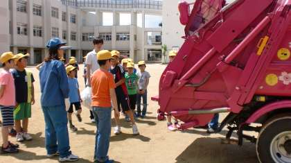 多目的室では、ごみの分別の仕方や、作業をされている方々の工夫や苦労などのお話を聞きました。大変な仕事だけど、大事な仕事だなあと感じた子どもたちでした。