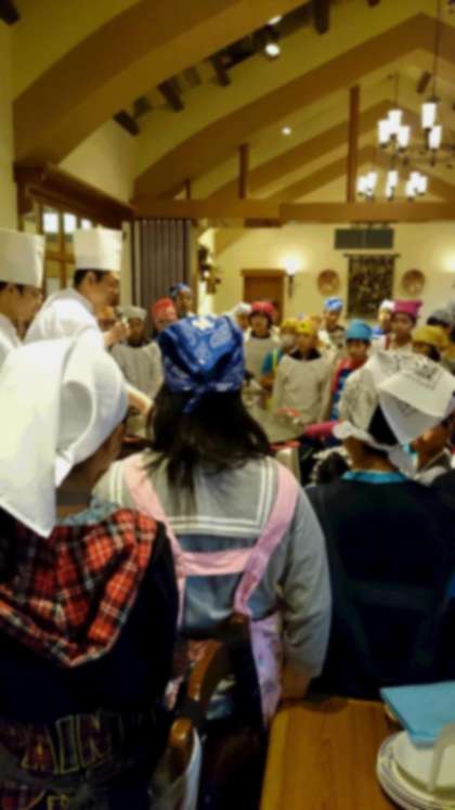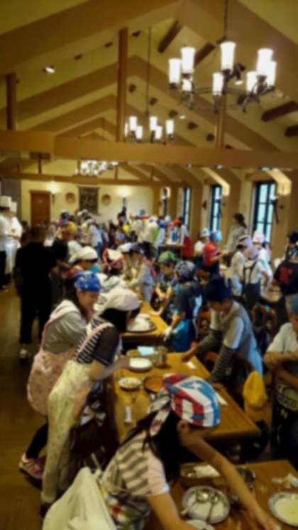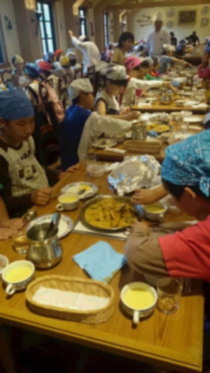 魚介類の香りが効いたパエリアにみんな大満足です。苦労した甲斐があって、「うちのグループのがおいしいよ!」と、あちこちで自慢が飛び交いました。