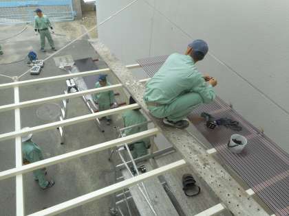 他の学校からも管理作業員さんが手伝いに来てくださって、1年生の教室近くの渡り廊下付近の作業をしてくださっています。