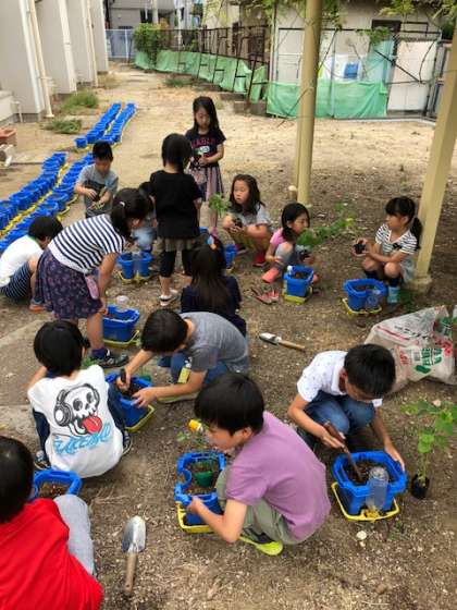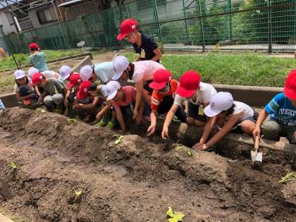 2年生はサツマイモと野菜のなえを植えました。