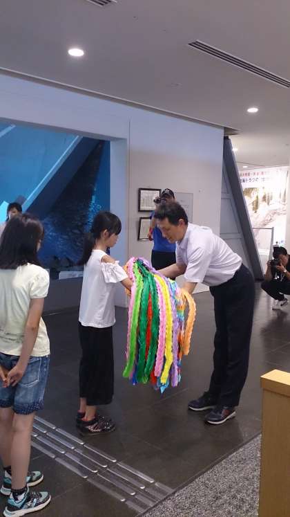 北淡震災記念館では学年で作成した千羽鶴を渡しました。