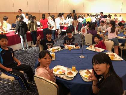 続いて、今朝の朝の集いと朝食の様子をお伝えします。少し体調を崩している子どもがいるようですが、その他は大きな事故もなく、元気に活動に取り組んでいるようです。