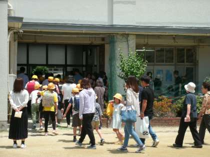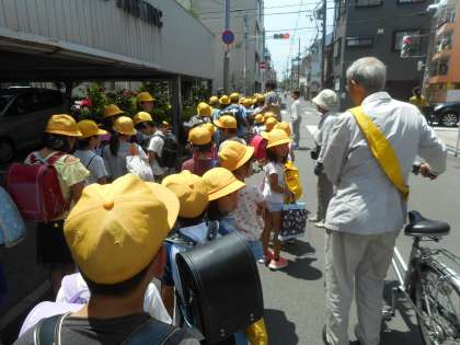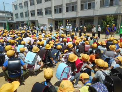 3時間目は地区別子ども会の集団下校を行いました。日頃から登下校でお世話になっている見守り隊の方にもお越しいただき、今日は一緒に下校しました。