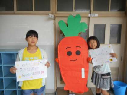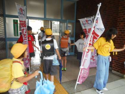今週はあいさつ週間です。毎朝、運営委員の児童が玄関で立ち元気にあいさつをしようと呼びかけています。今回はあいさつと同時にハイタッチをして気持ちの良いあいさつに取り組んでいます。今週だけに限らず、続けて欲しいと願っています。