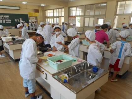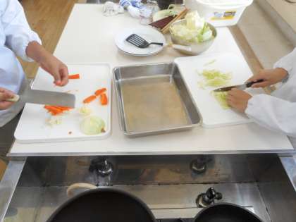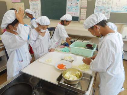 先週から今日にかけて6年生は調理実習を行いました。今回は朝ごはんをテーマにして、スクランブルエッグか卵焼き・野菜炒めを作りました。班で協力して野菜を切ったり、炒めたりしました。塩コショウの加減が難しかったようですが、とてもおいしくいただきました。