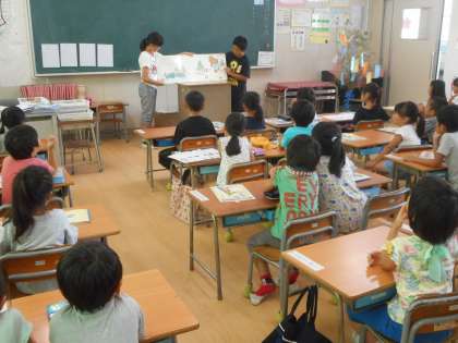 今日の朝の学習の時間に図書委員による本の読み聞かせがありました。1〜3年生までを対象に行いました。高学年として責任をもって取り組んでおり、立派です。これからもがんばってほしいと思います。