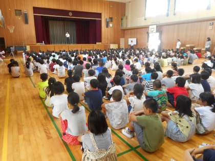 また、終業式では先日、住吉区民ホールで行われた「社会を明るくする運動」の標語の表彰を行いました。夏休みの宿題でも応募できるものがたくさんありますので、挑戦してほしいと思います。