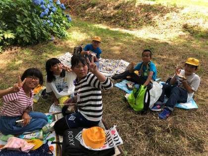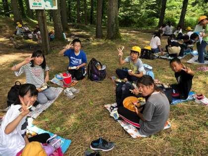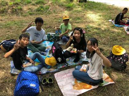 天気が良く、暑いので木陰で休んで昼食を食べています。