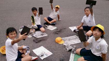 みんな真っ黒になって、ピカピカに磨いていまーす!