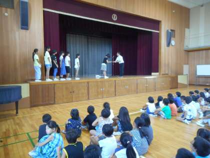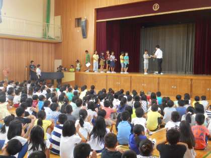 また、夏休みの水泳記録会、スポーツ交流会の表彰も行いました。他にも、習い事や様々なことで多くの子どもたちががんばった夏休みであったと思います。これからの活躍も期待しています。