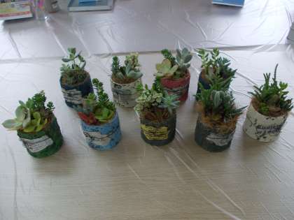 いろいろな種類の多肉植物の中から、各自が5本を選んで各自で植えます。それぞれの個性が表れたいい作品ができました。あとはどれだけ大事に育てていくかですね。