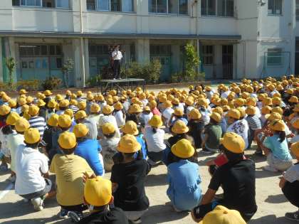 今朝は児童朝会がありました。快晴のもと、久しぶりの朝会となりました。校長先生より、今日から始まる運動会の練習についてや明日に日本に接近する台風についてのお話がありました。