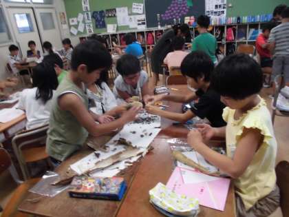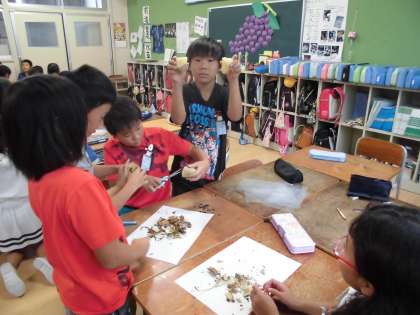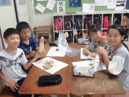 春に学習園に植えたへちまの種が子供たちが水をやったり草抜きをして大きく育ち、とうとう種ができました。今年の夏は、とても暑かったので枯れてしまわないかと心配していましたが、たくさん実をつけてくれました。グループでたわしを作り一人ひとりお家へ持って帰りました。