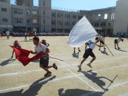 昨日、運動会を行いました。天気に恵まれて日頃の練習の成果を発揮することができました。応援合戦から声を出して運動会を盛り上げました。