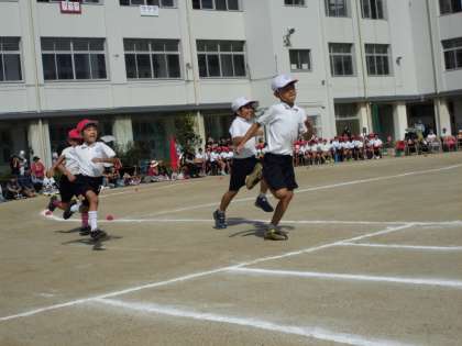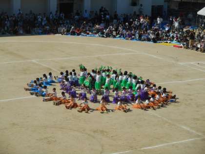 2年生はかわいい衣装でがんばって踊りました。なかなか運動場で練習できなかったみたいですけど、かっこよく決まりました。